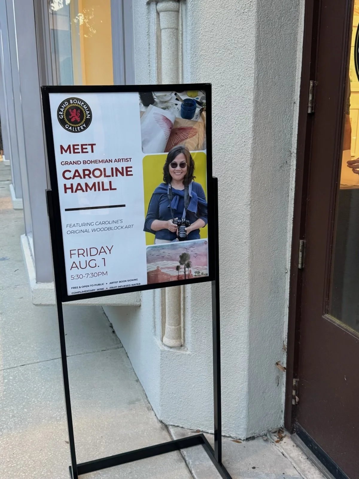 August 1st, 2025 - Caroline is the featured artist at the Grand Bohemian Gallery in St. Augustine, Showcasing her exquisite hand-printed Japanese woodblock prints.